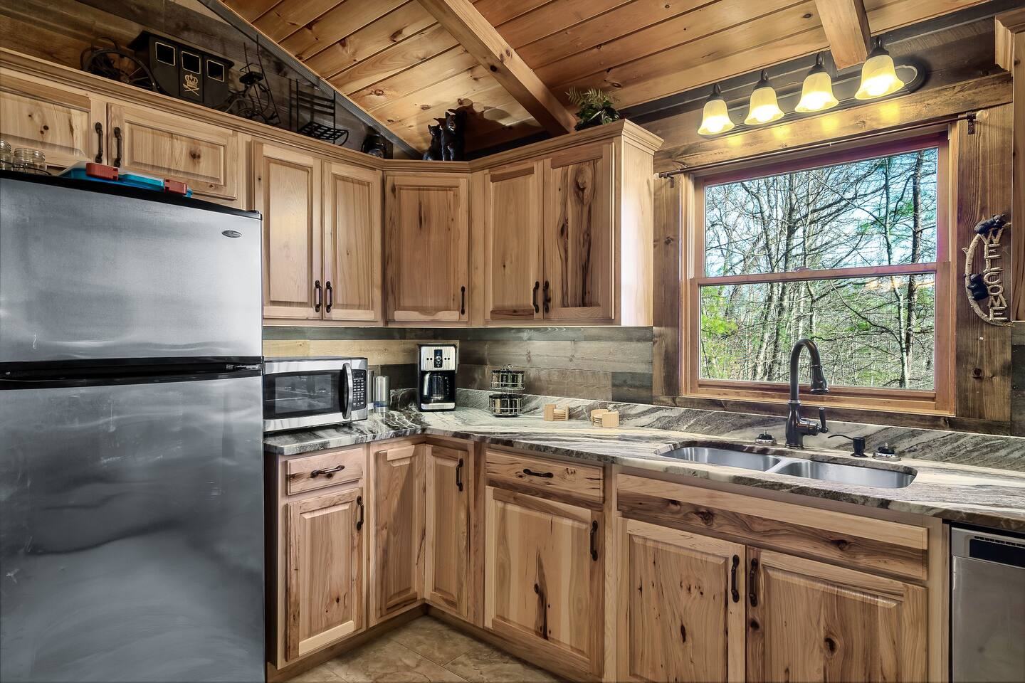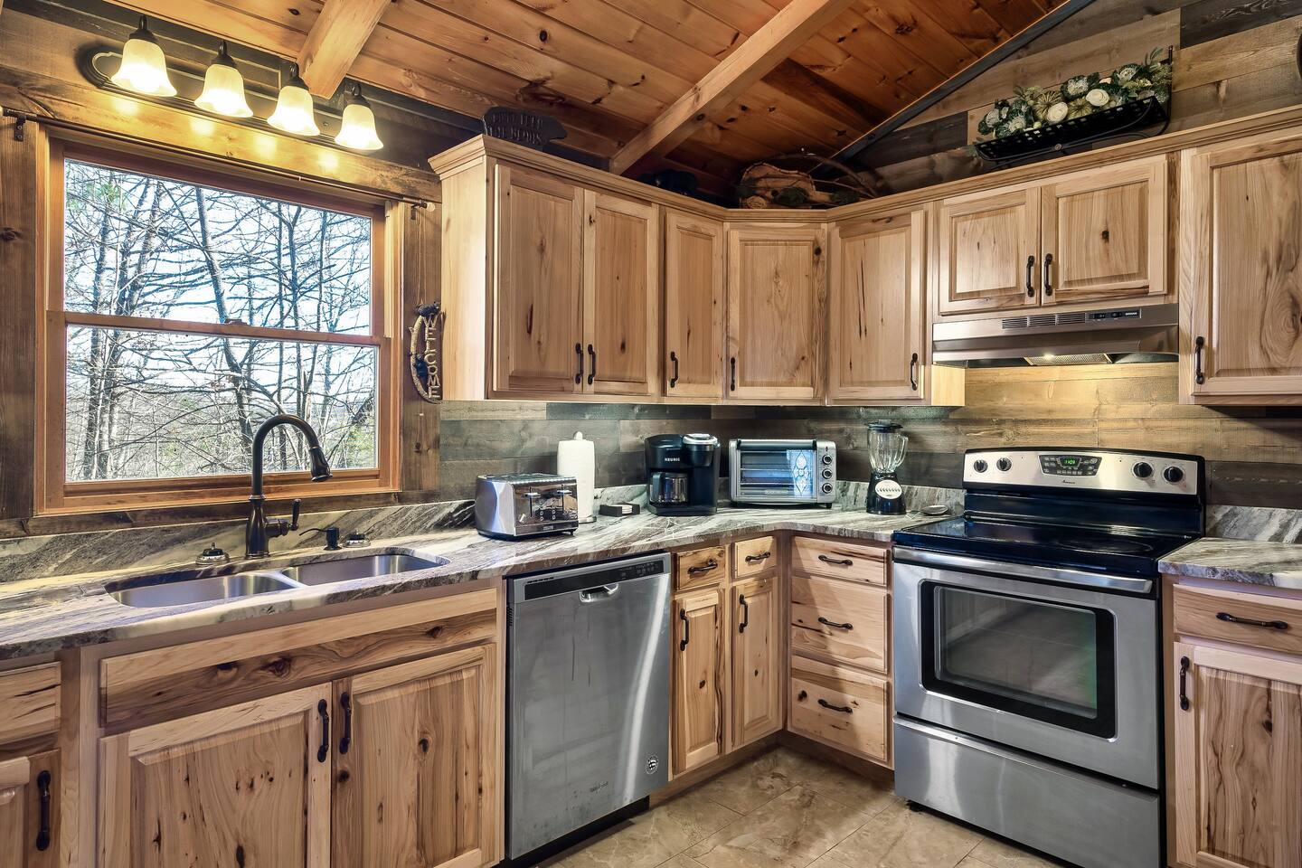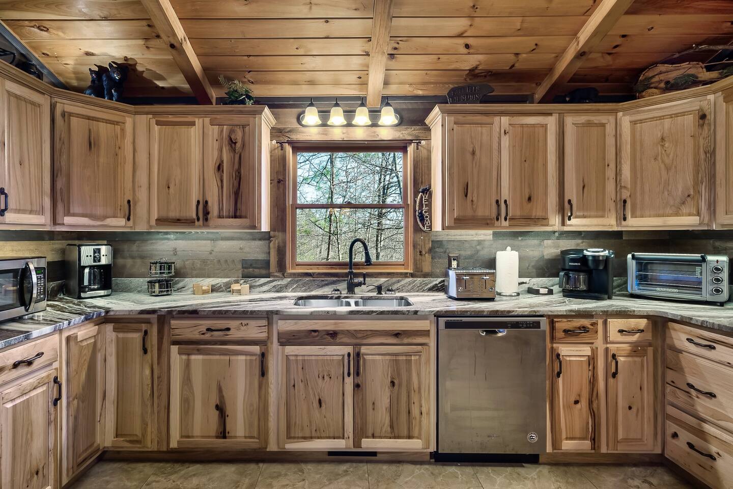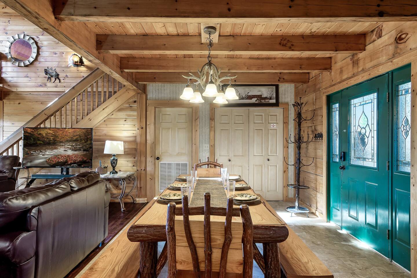 Maximum of 8 people, including children. No parties. No smoking or vaping inside the cabin. Ashtrays are provided outside. Pets are not allowed. We love our furry friends, but out of consideration for those with allergies, we do not allow pets. If you sneak in a pet of any kind, you will be charged an additional $175 and may be asked to leave. Please be advised that there is construction underway at a neighboring cabin, which is beyond our control. You may experience construction noises during this time. The construction team is permitted to operate between 7 am and 7 pm, although their presence on-site may vary. We apologize for any inconvenience this may cause and appreciate your understanding. There is a floodlight camera on the front exterior to monitor the entryway and parking area. If you touch or tamper with the camera, you will be asked to leave the property immediately. We highly advise that you purchase traveler's or trip insurance to protect your purchase in the event of poor weather, illness, or other factors outside our control that would cause you to cancel after booking. Many credit cards offer this protection as well. The cabin comes stocked with dishes, glasses, utensils, cookware, linens, and bathroom towels. We provide a starter kit of items to help make your check-in easier. These items are a courtesy to you; if you are particular about the items you use, be sure to bring or purchase whatever you need to your liking. Our starter kit includes: A pack of coffee with creamer, 1 paper towel, Dish soap, Dishwasher detergent, Laundry detergent, Trash bags, 2 toilet paper rolls per bathroom, Body wash, Body lotion, and Shampoo and conditioner. Roku streaming is provided, which includes free channels. Bring your own passwords for subscription channels. The cabin is in a mountainous region; therefore, some roads may be considered steep. We have no issues with a two-wheel-drive vehicle under normal dry conditions, but a four-wheel-drive vehicle is advisable under adverse conditions. We do not issue refunds for weather or driving issues as this is beyond our control. The cabin is in the woods. You will likely see and hear critters. The roof is metal, and there is no attic. If a squirrel crawls on the roof, you will hear it. If it’s raining, you will hear it. If you see a bear during your stay, whether in the park or in the driveway, do not feed it. Stay away from it. They are dangerous. Bears are rare! We have our cabin on a monthly pest control program performed by a certified and professional pest control company. As is the case with all cabins in the area and likely your own home, 100% pest-free is impossible to attain, and occasionally a bug may slip through these defenses.
