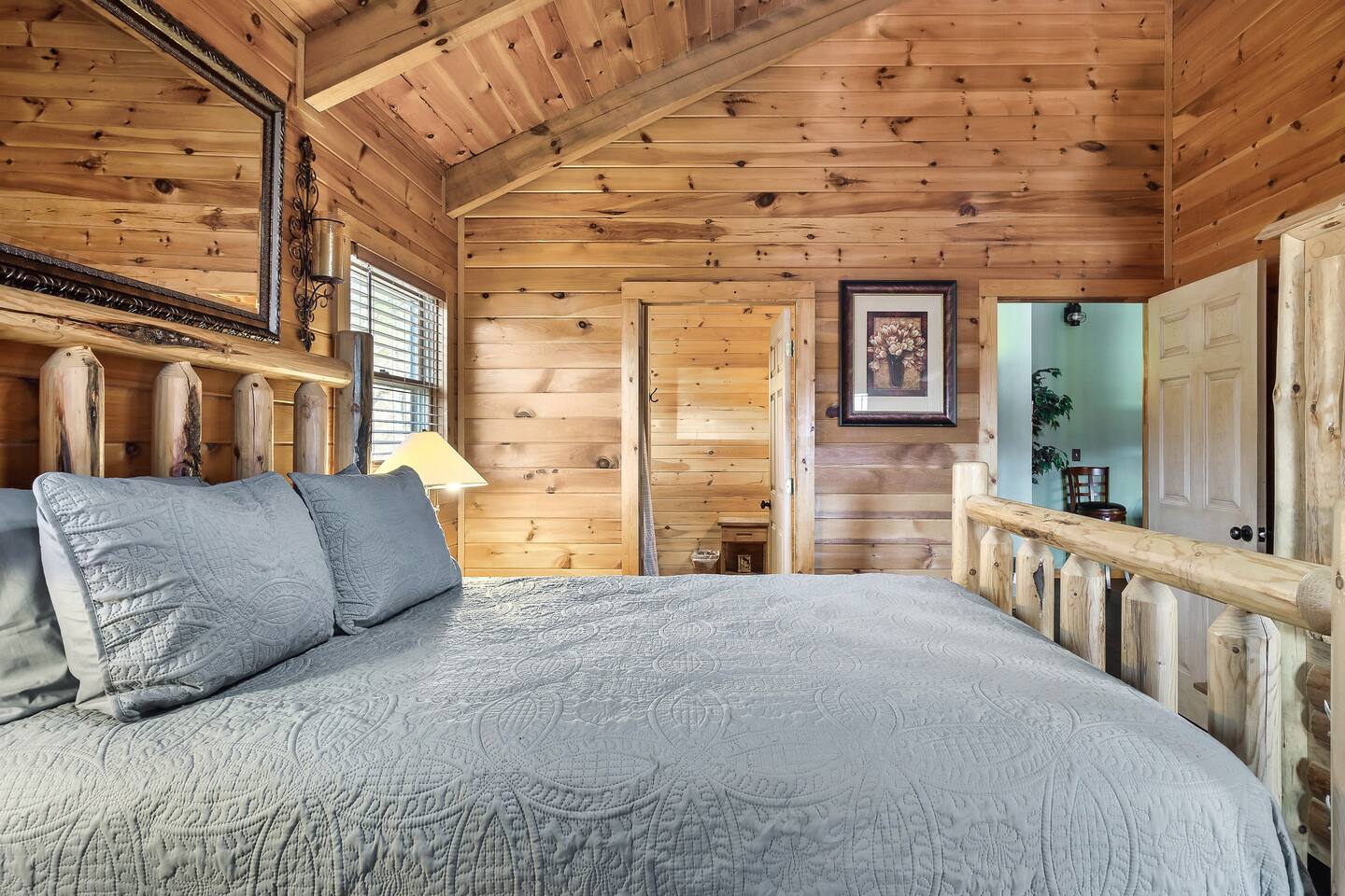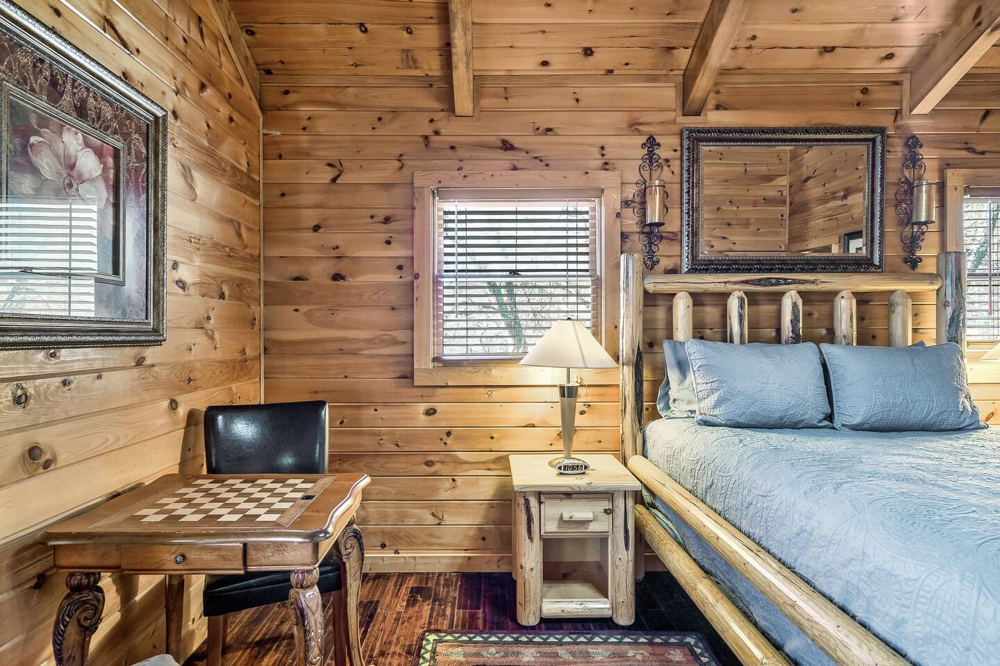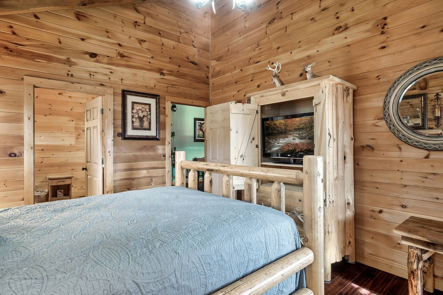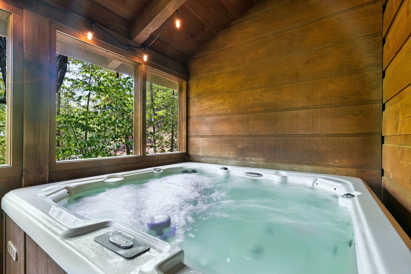 Relax and unwind in the screened-in 6-person hot tub with a sitting room, or enjoy friendly competition with the pool table and air hockey. Stay entertained with 4 TVs featuring Roku streaming and a selection of board games. As part of the Shagbark Resort community, your cabin reservation includes access to fantastic amenities such as an outdoor pool (open Memorial Day to Labor Day), pickleball, tennis, basketball courts, cornhole, frisbee golf, a playground, picnic pavilion, fitness trail, and a community center available for rent. Each of the three deck levels offers a unique experience. The main level deck features ample seating, a gas grill, and a picnic table, with access to the screened-in sitting room and hot tub. The private upper-level deck provides a porch swing and chairs for enjoying mountain views, while the lower-level deck offers a private couples' escape with a table and chairs. Step inside the cabin to admire the beautiful wood interior and craftsmanship. The spacious living room, dining area, and fully equipped, remodeled kitchen create a welcoming atmosphere. Relax by the cozy stone gas fireplace, enjoy the comfortable seating area, and watch your favorite shows on the 70" flat-screen HD TV. The main level also features a king-size bedroom with a 50" TV, private bathroom, and direct access to the hot tub. The lower level offers a second bedroom with a plush king-size bed, a 42" TV, and a private bathroom. Have fun with the air hockey table and enjoy the private balcony with a bistro table and chairs. Head upstairs to the loft game room with a pool table and the third bedroom. This bedroom includes a queen-size bed, seating chairs, a 32" TV, and a private bath. Relax on the private deck with a porch swing and breathtaking views. Throughout the cabin, you'll find unique log furniture and stunning Smoky Mountain beauty at every turn. CABIN LOCATION: This lovely log cabin is located down Walden's Creek Road, on the Wears Valley side of Pigeon Forge, situated in the mountainous woodlands. When you're ready to leave your cabin retreat, you can enjoy all that the area has to offer, whether it be hitting the main Parkway in Pigeon Forge (25 minutes) or exploring the Great Smoky Mountain National Park or Gatlinburg (40 minutes). Note: Please be advised that there is construction underway at a neighboring cabin, which is beyond our control. You may experience construction noises during this time. The construction team is permitted to operate between 7 am & 7 pm, although their presence on-site may vary. We apologize for any inconvenience this may cause and appreciate your understanding.