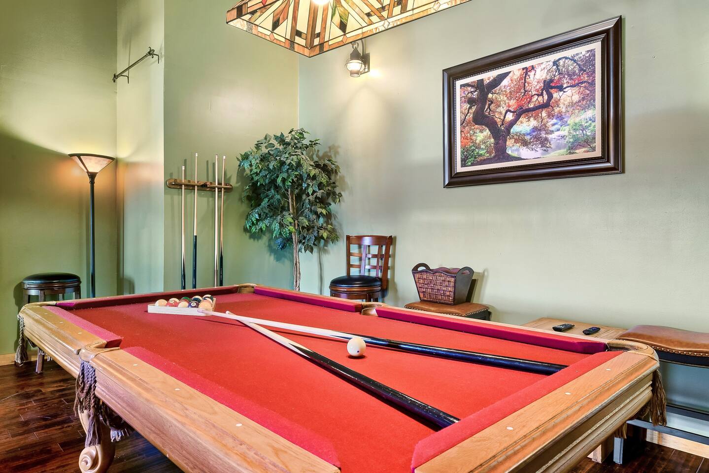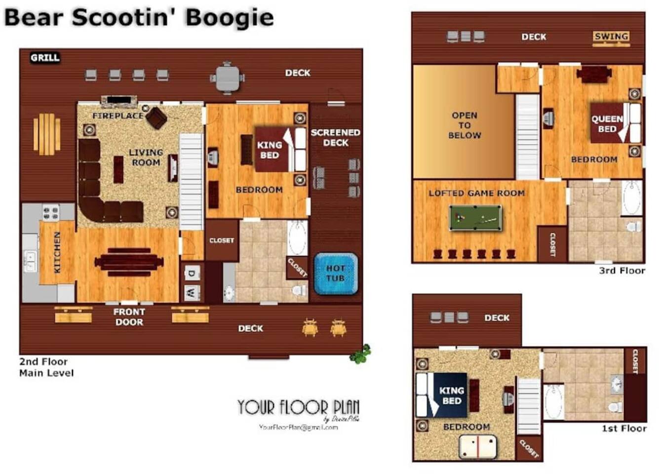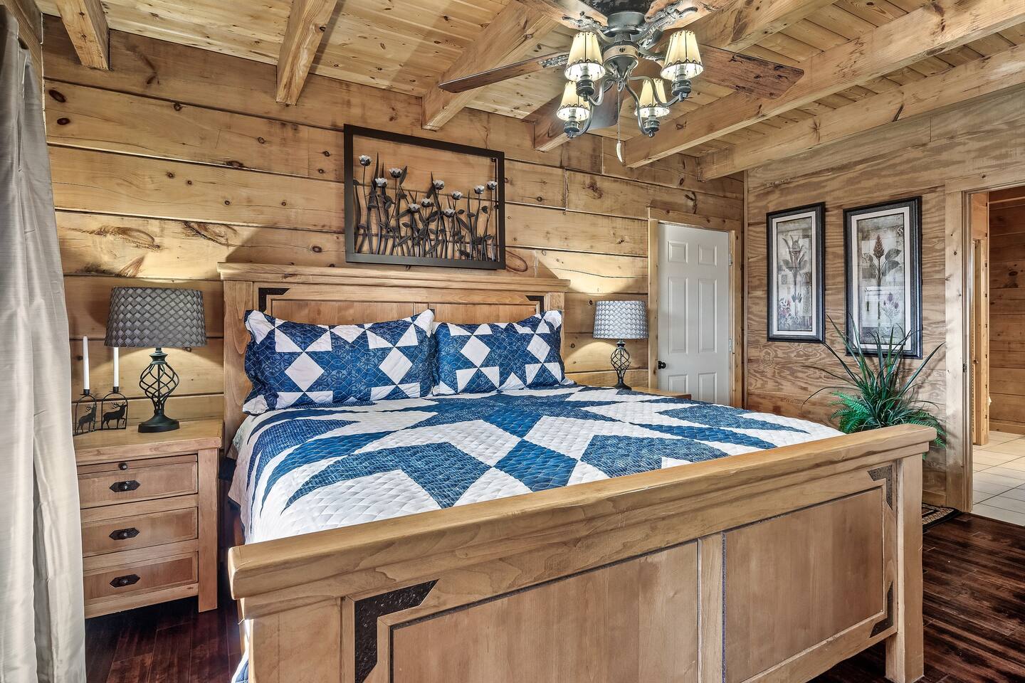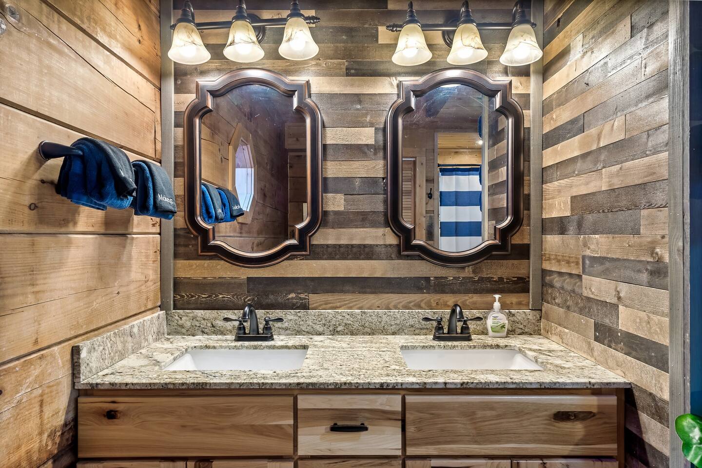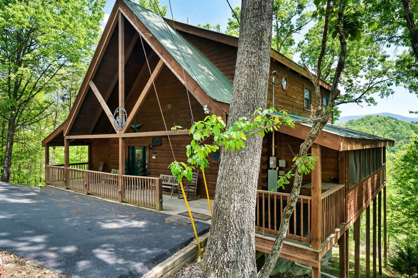 Relax and unwind in the screened-in 6-person hot tub with a sitting room, or enjoy friendly competition with the pool table and air hockey. Stay entertained with 4 TVs featuring Roku streaming and a selection of board games. As part of the Shagbark Resort community, your cabin reservation includes access to fantastic amenities such as an outdoor pool (open Memorial Day to Labor Day), pickleball, tennis, basketball courts, cornhole, frisbee golf, a playground, picnic pavilion, fitness trail, and a community center available for rent. Each of the three deck levels offers a unique experience. The main level deck features ample seating, a gas grill, and a picnic table, with access to the screened-in sitting room and hot tub. The private upper-level deck provides a porch swing and chairs for enjoying mountain views, while the lower-level deck offers a private couples' escape with a table and chairs. Step inside the cabin to admire the beautiful wood interior and craftsmanship. The spacious living room, dining area, and fully equipped, remodeled kitchen create a welcoming atmosphere. Relax by the cozy stone gas fireplace, enjoy the comfortable seating area, and watch your favorite shows on the 70" flat-screen HD TV. The main level also features a king-size bedroom with a 50" TV, private bathroom, and direct access to the hot tub. The lower level offers a second bedroom with a plush king-size bed, a 42" TV, and a private bathroom. Have fun with the air hockey table and enjoy the private balcony with a bistro table and chairs. Head upstairs to the loft game room with a pool table and the third bedroom. This bedroom includes a queen-size bed, seating chairs, a 32" TV, and a private bath. Relax on the private deck with a porch swing and breathtaking views. Throughout the cabin, you'll find unique log furniture and stunning Smoky Mountain beauty at every turn. CABIN LOCATION: This lovely log cabin is located down Walden's Creek Road, on the Wears Valley side of Pigeon Forge, situated in the mountainous woodlands. When you're ready to leave your cabin retreat, you can enjoy all that the area has to offer, whether it be hitting the main Parkway in Pigeon Forge (25 minutes) or exploring the Great Smoky Mountain National Park or Gatlinburg (40 minutes). Note: Please be advised that there is construction underway at a neighboring cabin, which is beyond our control. You may experience construction noises during this time. The construction team is permitted to operate between 7 am & 7 pm, although their presence on-site may vary. We apologize for any inconvenience this may cause and appreciate your understanding.